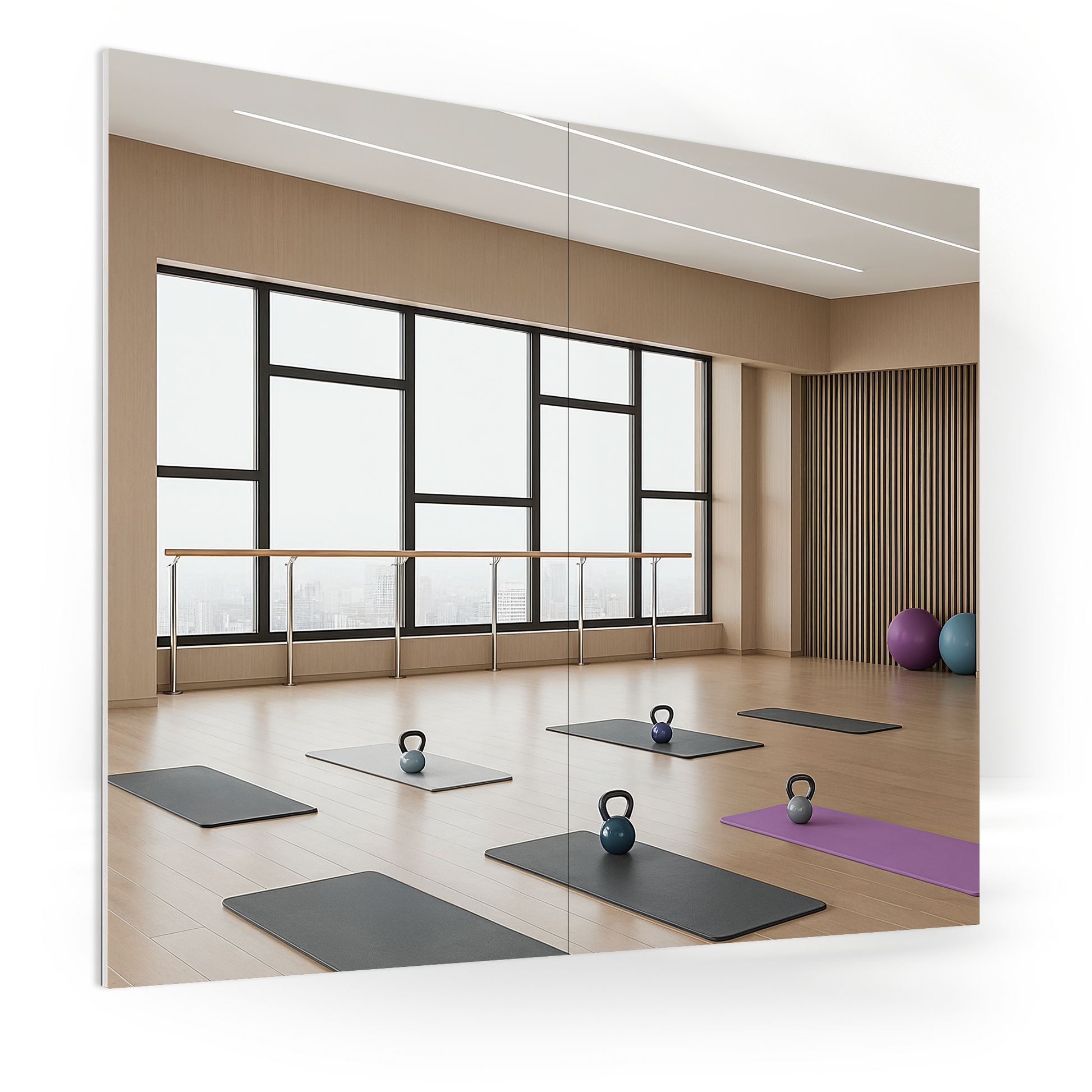 Bruchsicherer Spiegel für Fitness, Yoga und Tanzstudios mit gestochen scharfer Reflexion für präzise Körperhaltungskontrolle.
