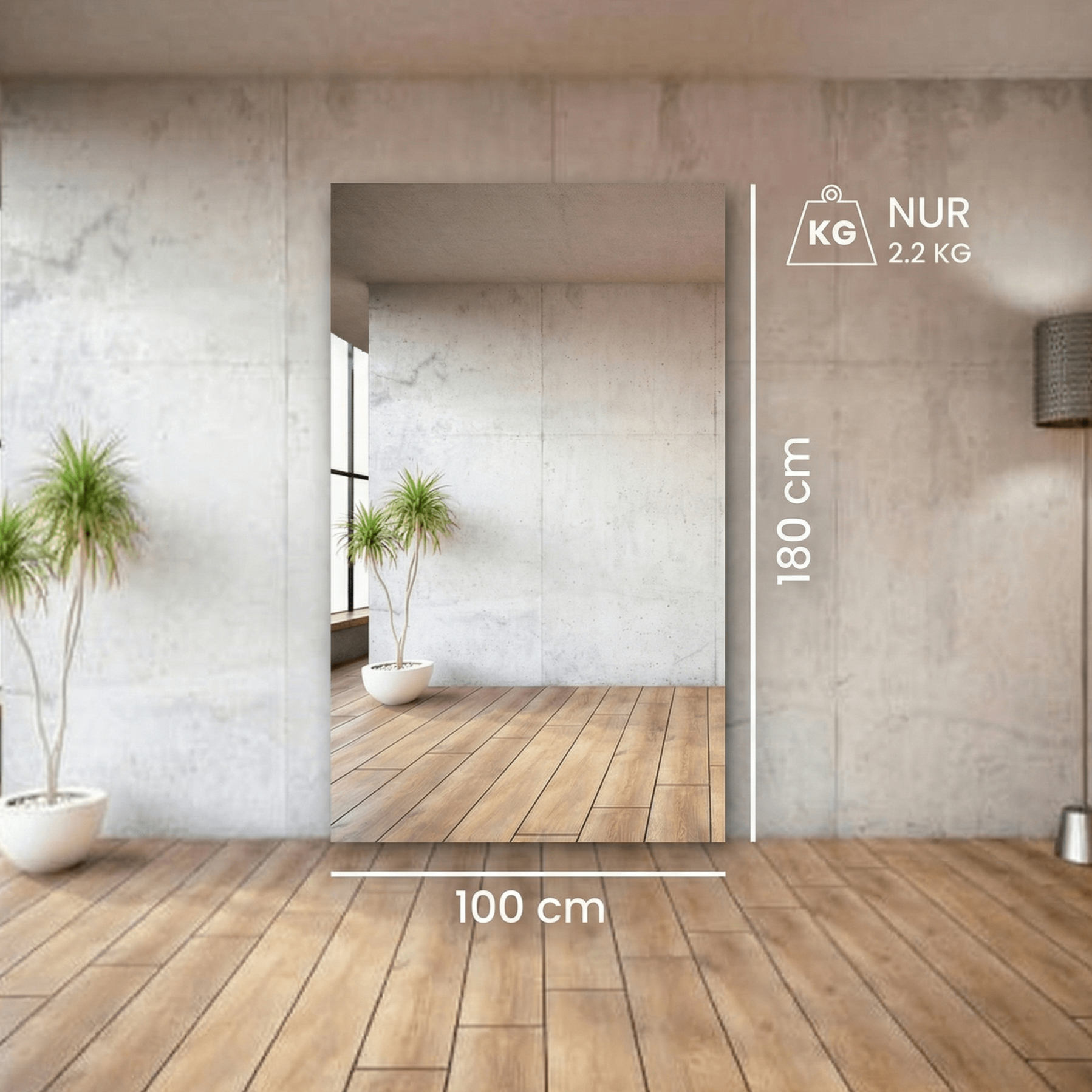 Bruchsichere & ultraleichte Spiegelwand - mit montierbaren Rollen